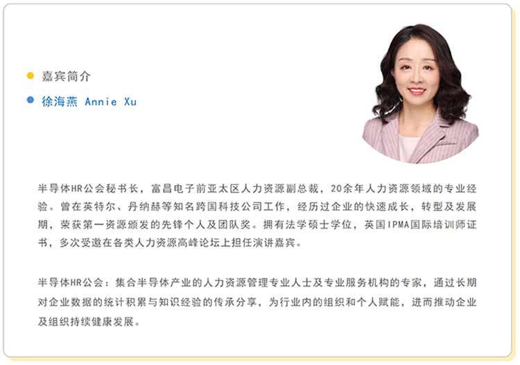 “行业瞭望”系列第八期邀请半导体HR公会秘书长,富昌电子前亚太区人力资源副总裁徐海燕女士,分享其关于集成电路行业人才招聘管理、培育、
