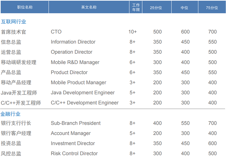 薪酬招聘趋势:金融这种发展迅猛的行业整体涨幅15%左右。