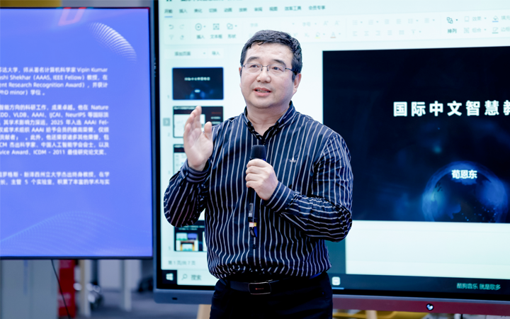 随后,荀恩东教授分享了其基于AI技术在教育领域的前瞻探索,聚焦于如何让大模型切实赋能教师这一关键课题。他创新性地提出了以数据、知识与技术系统三者协同联动的路径,旨在推动国际中文智慧教育实现深度变革。与那些将大模型直接视为教学主体的观点不同,荀教授着重强调应把大模型当作得力工具,巧妙地嵌入教学流程之中,全力支撑教育工作者达成个性化、可持续的教学目标。