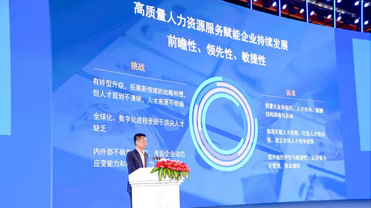 十分荣幸能够在第一届全国人力资源服务业发展大会这一行业盛事中与大家分享交流。提到高质量发展,刚刚各位专家、企业家已经从不同的视角做了非常全面的阐述,我想我更多是从一个从业25年的老兵视角,谈谈我对于高质量人力资源服务的理解,以及所做的探索和实践。
