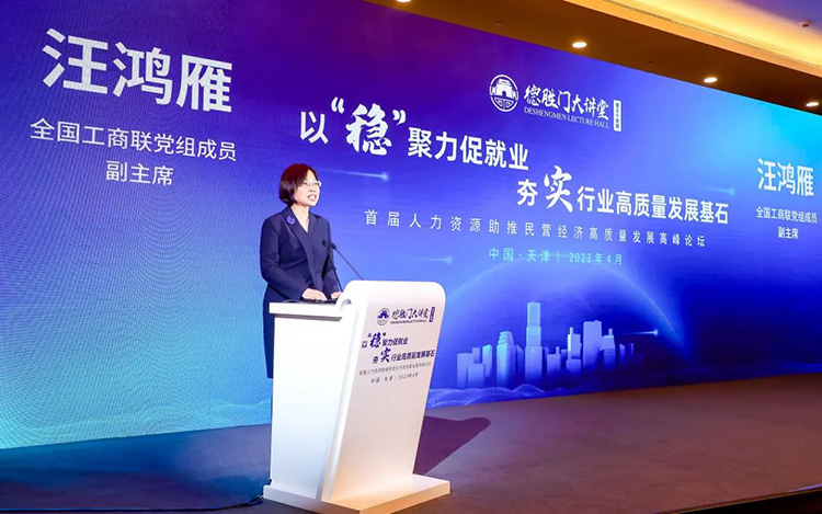 4月8日,“第五十四期德胜门大讲堂暨首届人力资源助推民营经济高质量发展高峰论坛活动”在天津成功举办。本次活动由全国工商联主办,天津市工商联、全国工商联人力资源服务业委员会承办,全国工商联人才交流服务中心协办,主题为“以‘稳’聚力促就业 夯实行业高质量发展基石”。全国工商联党组成员、副主席汪鸿雁,天津市人民政府副市长李文海出席并致辞,活动共吸引570余名业内人士和企业家参加。