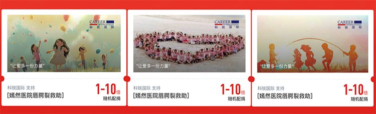 参加腾讯99公益项目,携手嫣然天使儿童医院为唇腭裂儿童手术进行捐款。活动当天,通过非凡国际